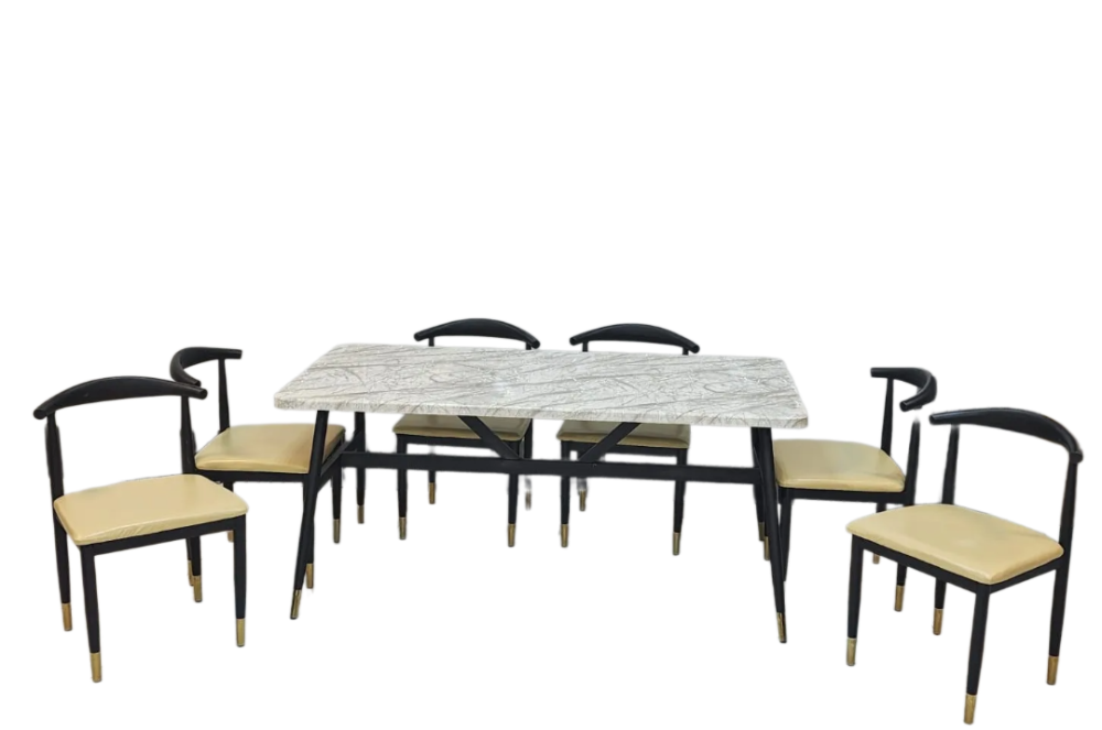 - سطح الطاولة بملمس يشبه الرخام يمنح المكان مظهرًا فاخرًا وأنيقًا.