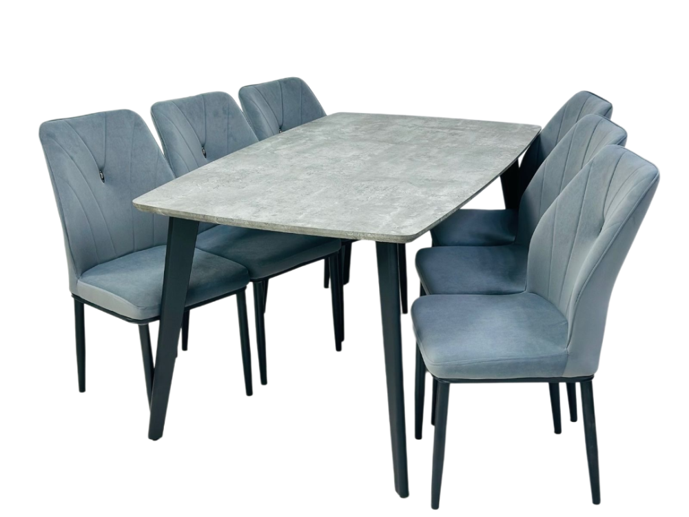 طقم طاوله طعام خشب تصميم عصري لون رمادي 6 كرسي من كاما