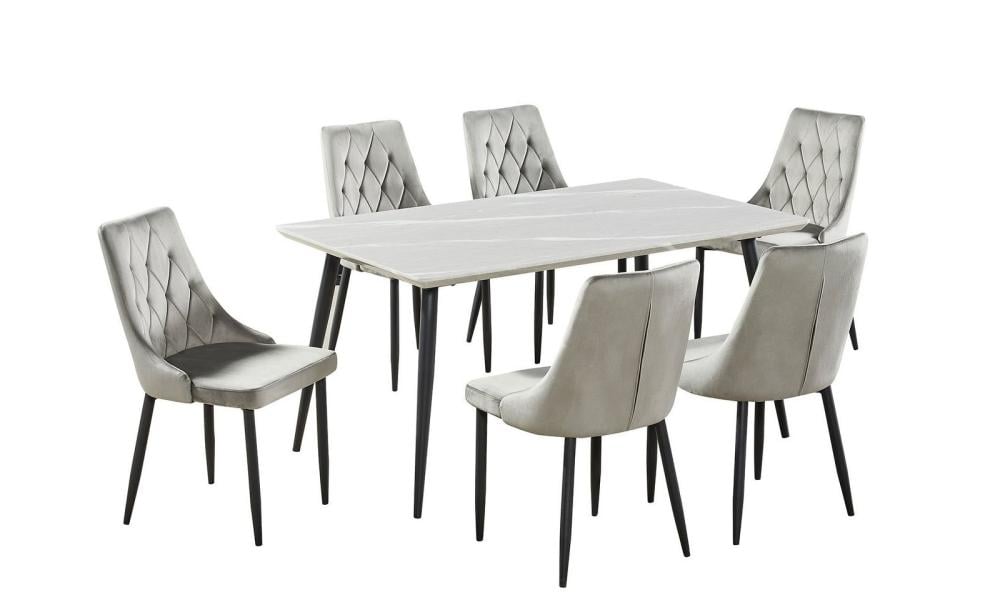 طقم طاوله طعام بديل رخام انيقة لون رمادي 6 كرسي من كاما