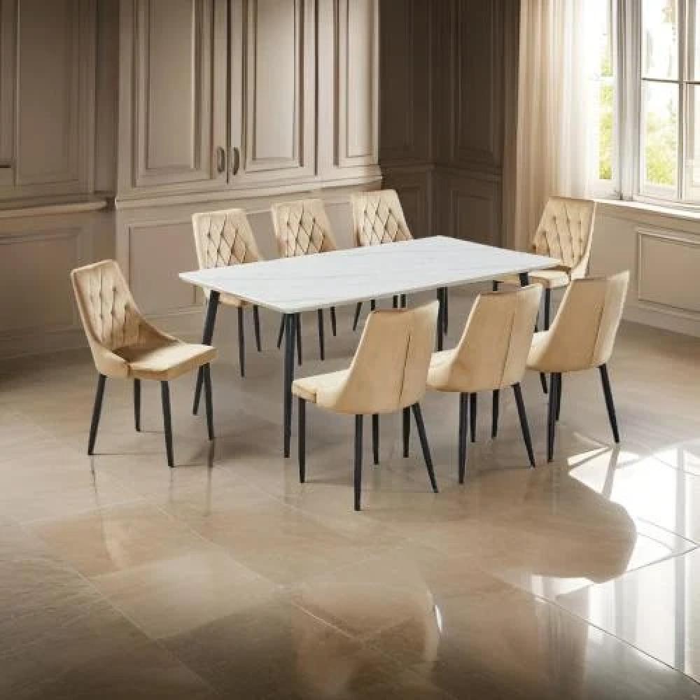 - بديل الرخام مقاوم للخدوش والرطوبة، مما يجعل الطاولة متينة وسهلة الصيانة.