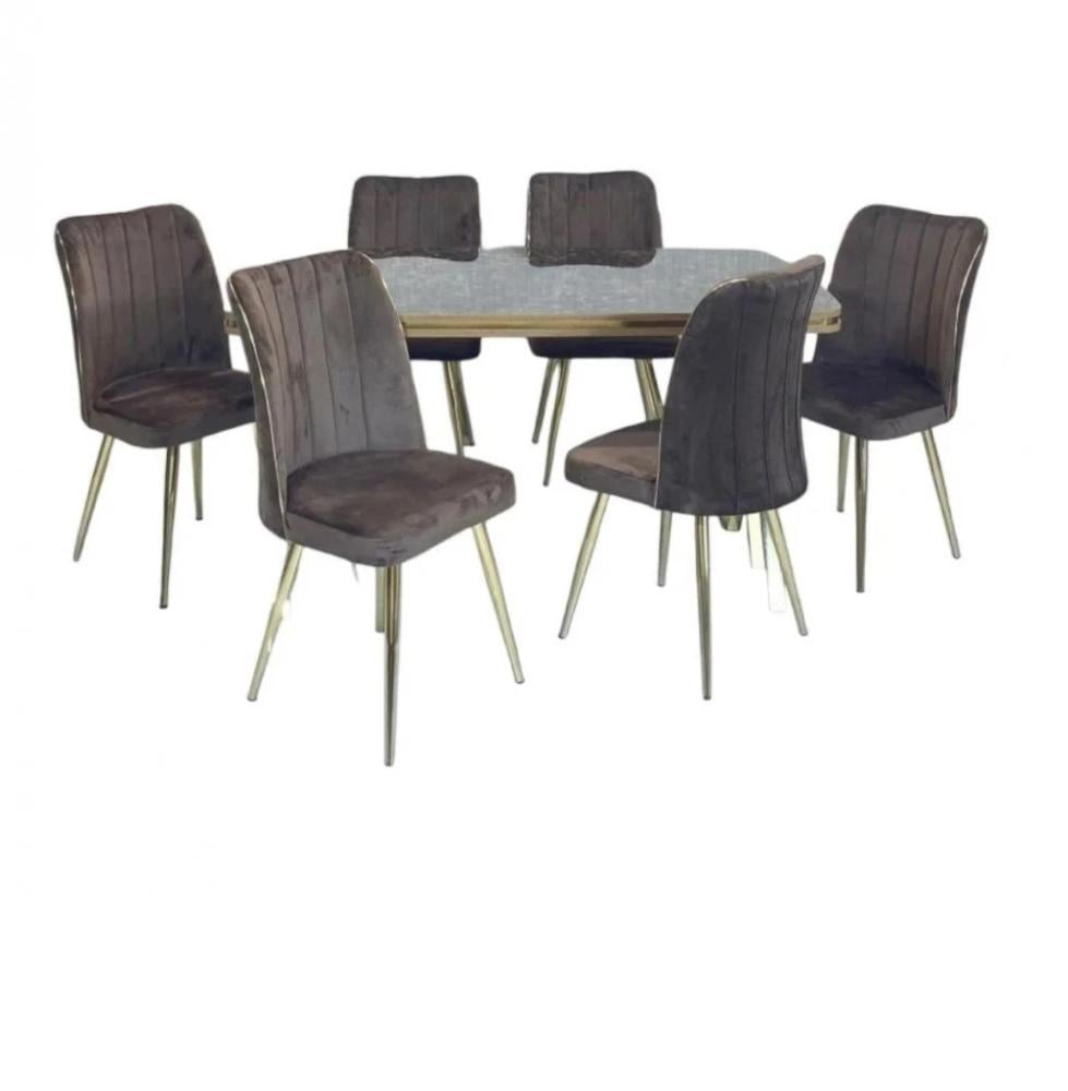 طاولة طعام لون بني تركية بسطح خشبي فاخر مع 6كراسي مريحة لتنسيق المساحات الحديثة