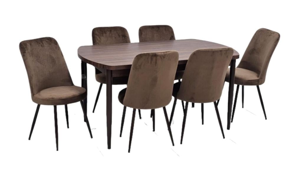 طاولة طعام خشب مع 6 كراسي مخمل لون بني مقدم لكم من كاما