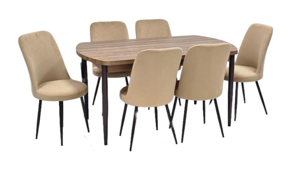 طاولة طعام خشب مع 6 كراسي مخمل لون بيج غامق مقدم لكم من كاما