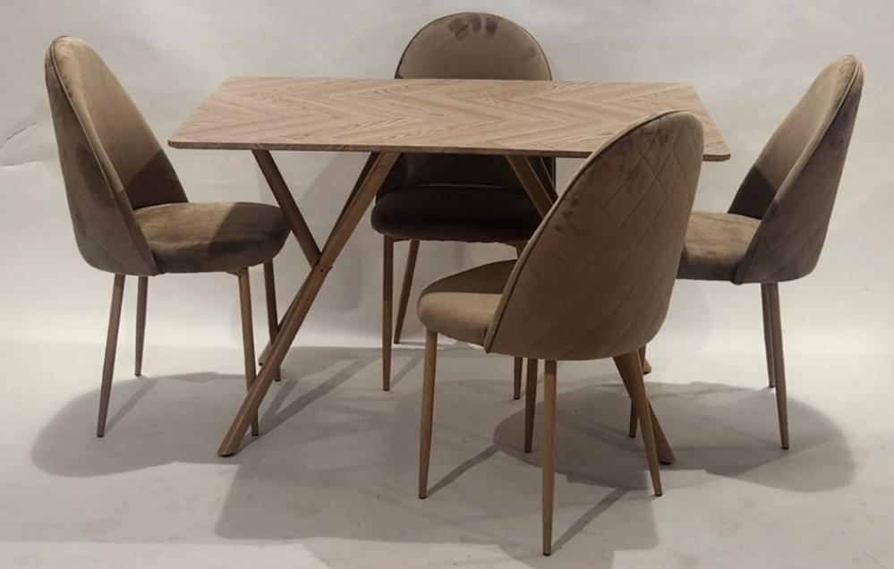 يتكون من طاولة سفرة تأخذ الشكل المستطيل والمصنوعة من الخشب الطبيعي بأرجل قوية من المعدن و6 كراسي انيقين من المخمل مزودة بمسند للظهر ويساعد على الراحة والاسترخاء أثناء الجلوس