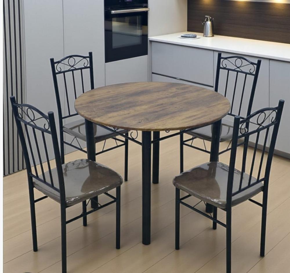 طاولة طعام خشب دائرية بلون مميز طاولة مطبخ مع 4 كراسي - مقاس دائرة 88 سم * ارتفاع 76 سم