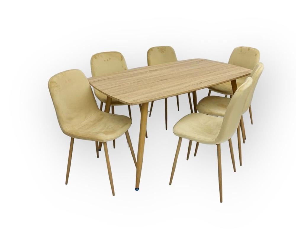 طاولة طعام خشب بتصميم أنيق وعملي مع 6كراسي، مصنوعة من خشب عالي الجودة، خامات قوية وشديدة التحمل، سهلة التنظيف