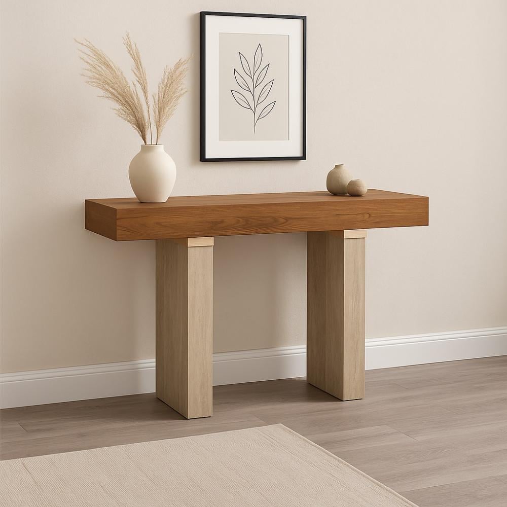 طاولة كنسول مدخل خشبي لون بني وبيج بجودة عالية وأناقة عصرية من كاما