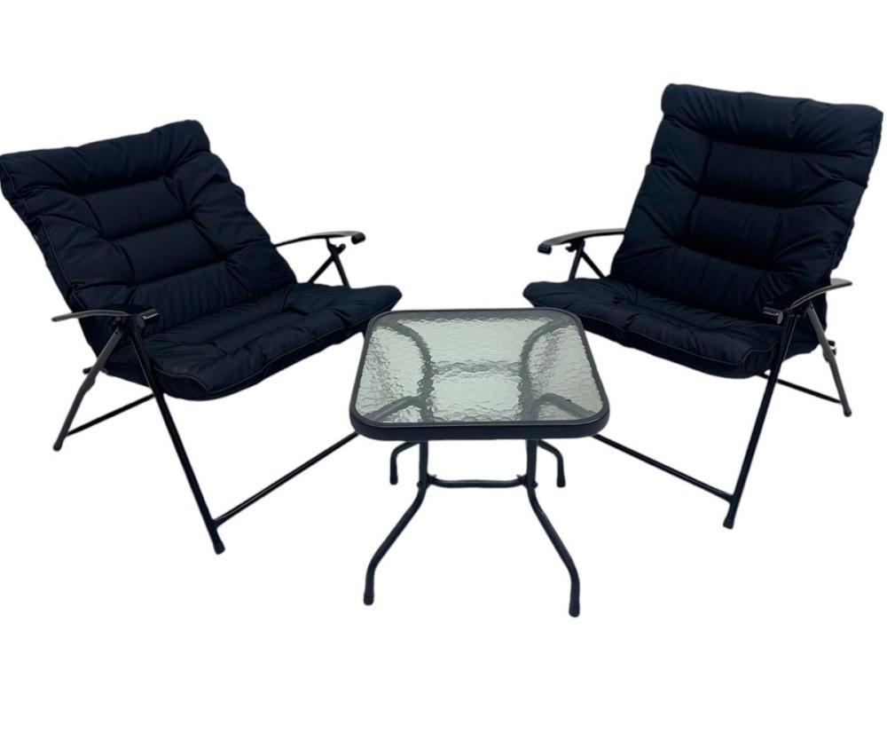 طقم جلسة خارجية مكون من 2 كرسي وطاولة لون كحلي مقدم لكم من كاما