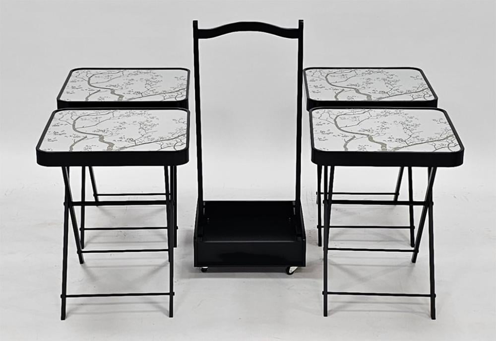 يضم أربع طاولات قابلة للطي مع حامل أنيق وسهل الحركة.