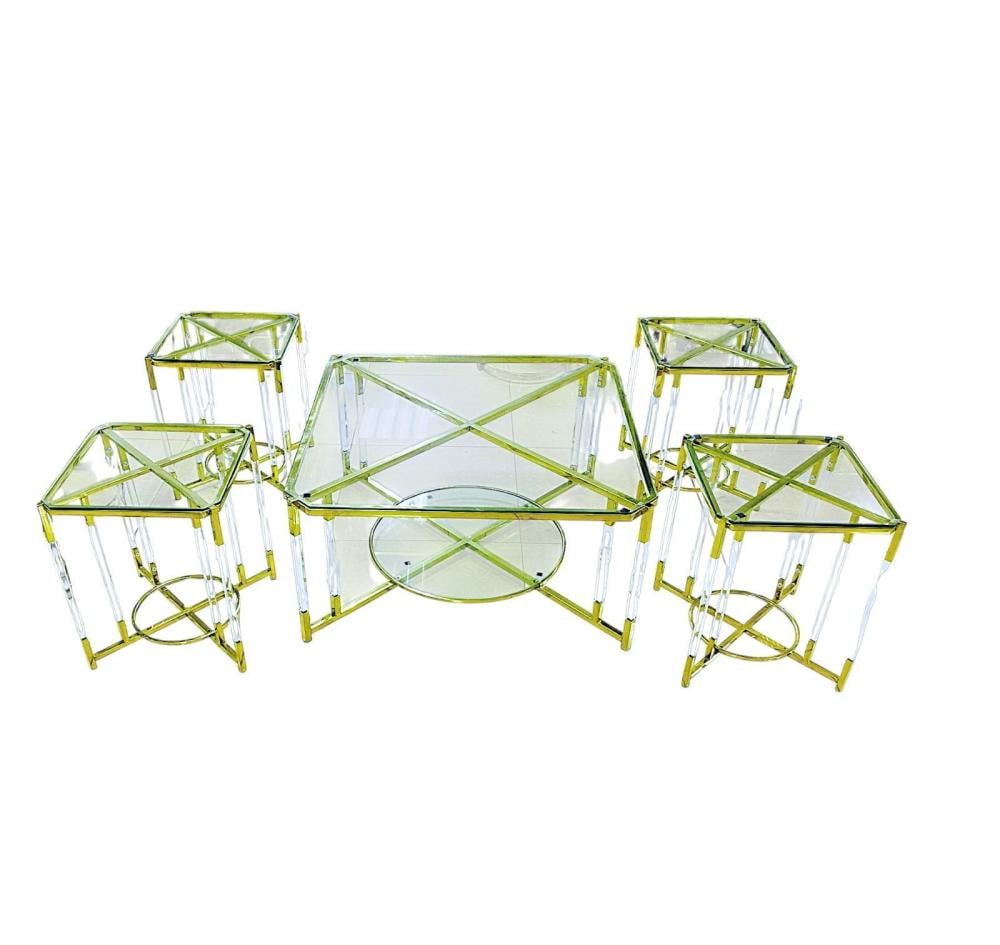أضف لمسة فاخرة لصالونك مع طقم الطاولات العصري من كاما، المصمم بزجاج شفاف وهيكل من الأكريليك المدعم بمقاطع ذهبية تمنح المكان إشراق وأناقة.