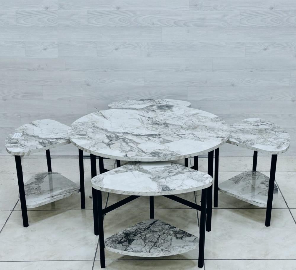 طقم طاولة شاي خشب تصميم مودرن 4+1 لون أبيض رخامي مقدمة لكم من كاما