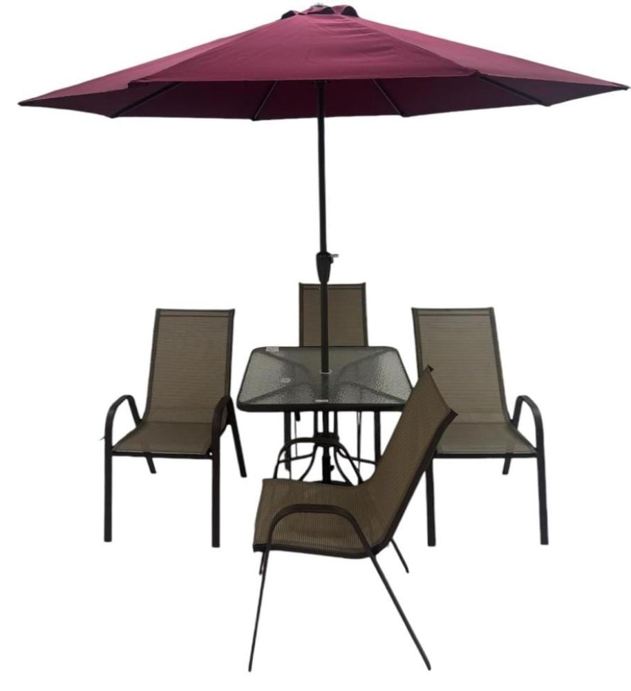 جلسة خارجية طاولة مربعة مع ٤ كراسي لون بني مع شمسية من كاما