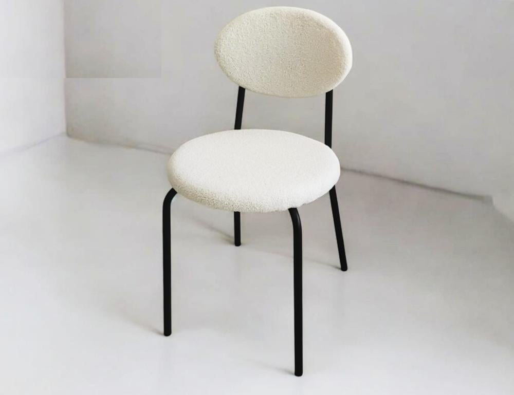 كرسي طعام بتصميم عصري وأنيق، . مصنوع من معدن متين ومغطى بقماش بوكليه فاخر، مما يجعله إضافة مثالية لطاولة الطعام ويضفي لمسة من الأناقة على ديكور منزلك.