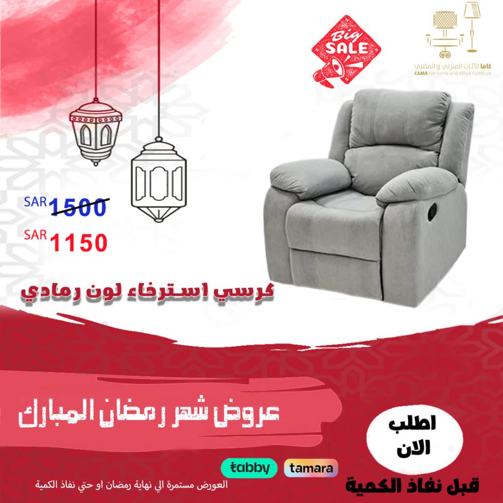 كرسي استرخاء مودرن ثابت لون رمادي مقدم لكم من كاما