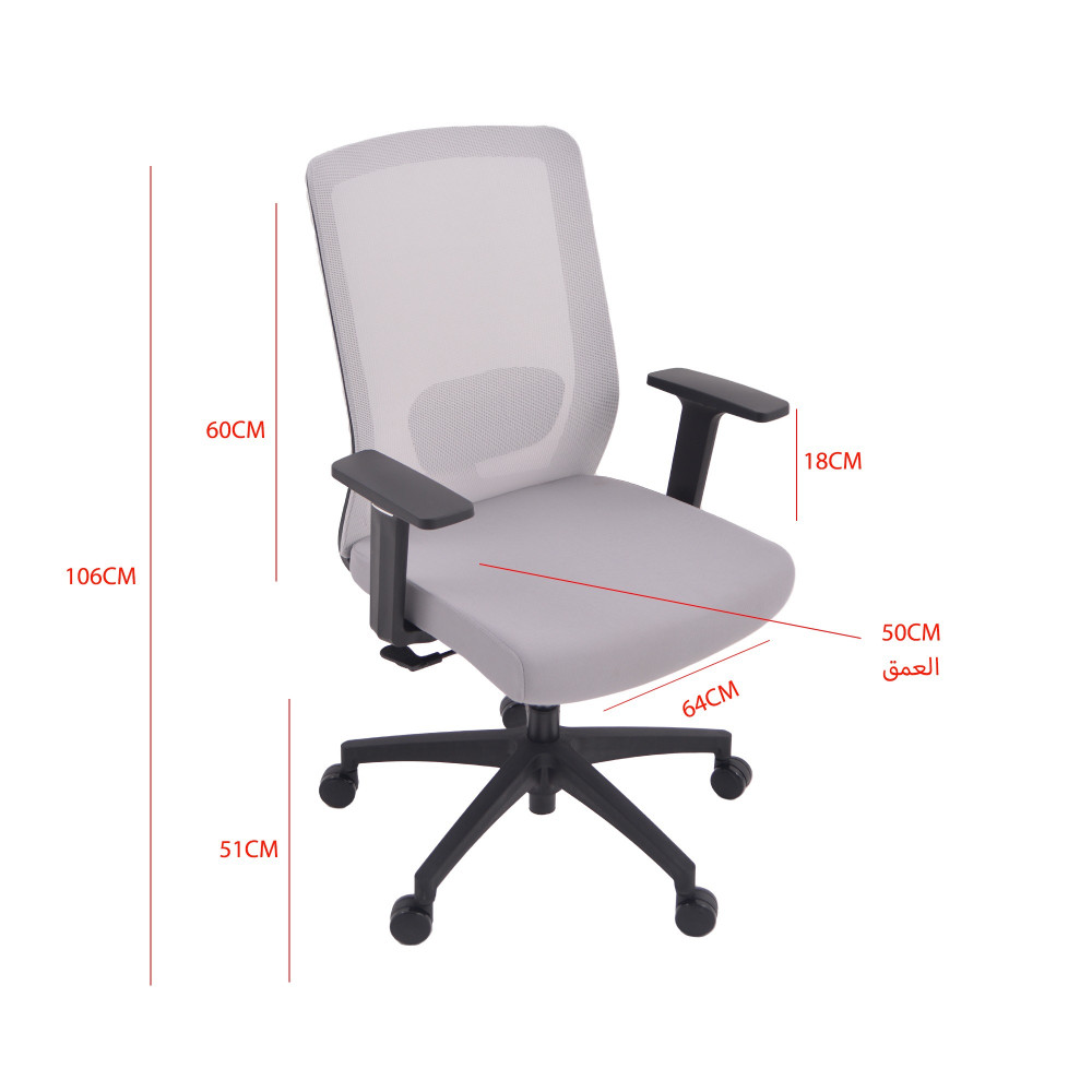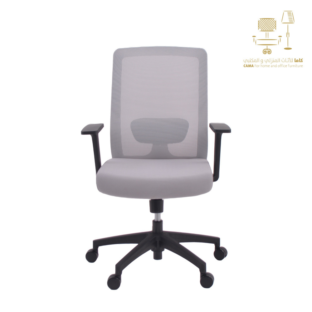 المواصفات : كرسي بظهر شبكي مع مقعد من القماش الاسفنجي ومسند رأس وقاعدة فولاذية