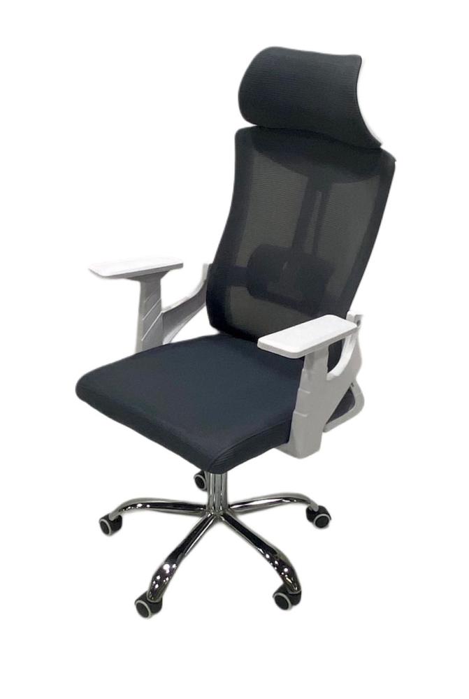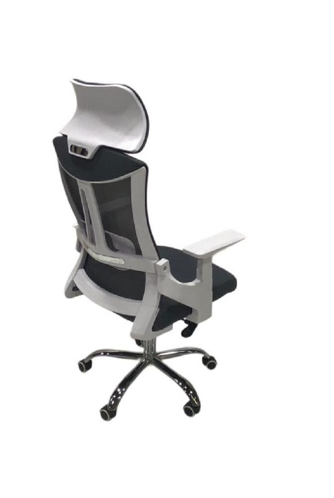 كرسي شبكي مرتفع الظهر قابل للتعديل مريح دوار لون رمادي وأبيض من كاما