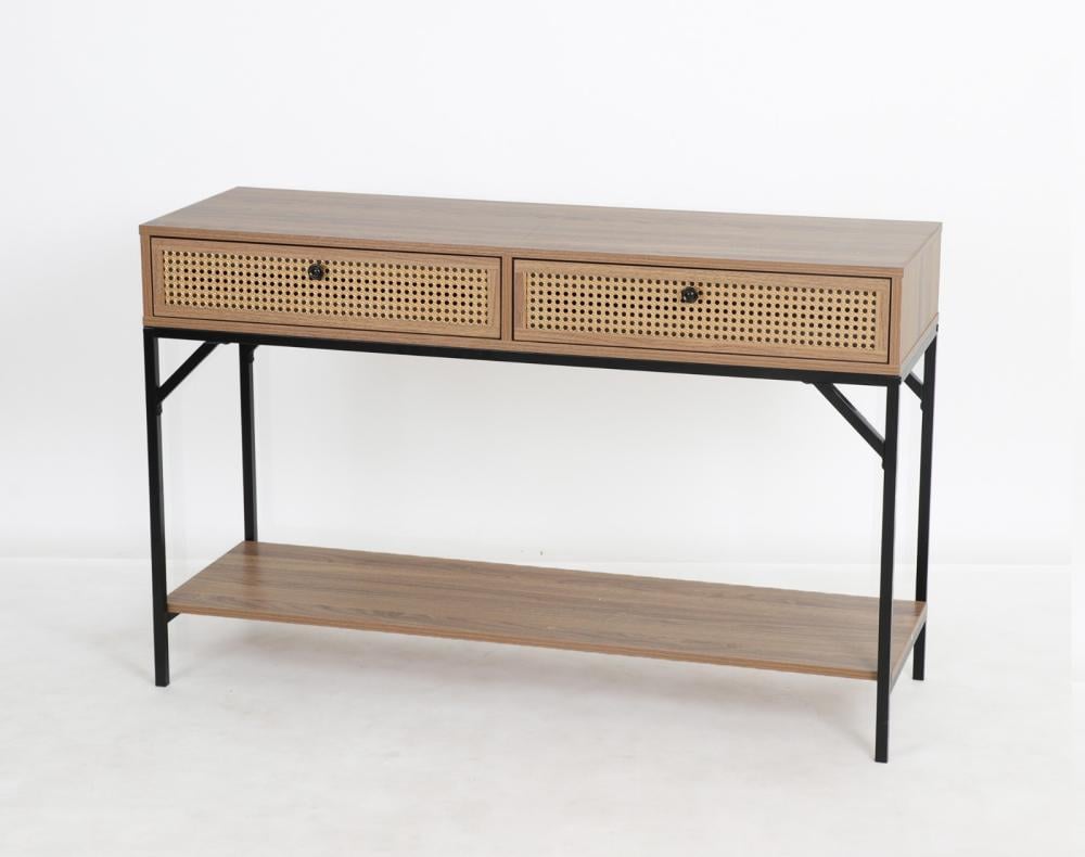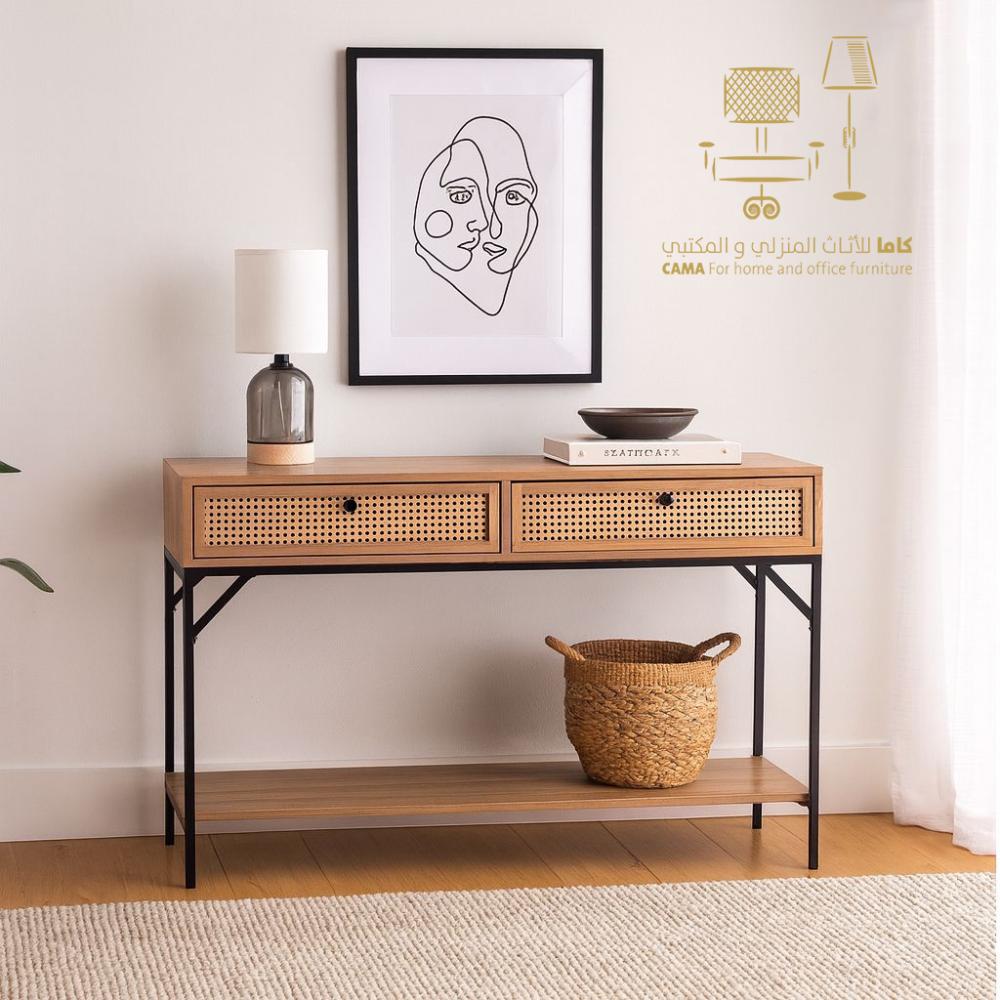 كونسول خشبي بقاعدة حديد مع اثنين درج