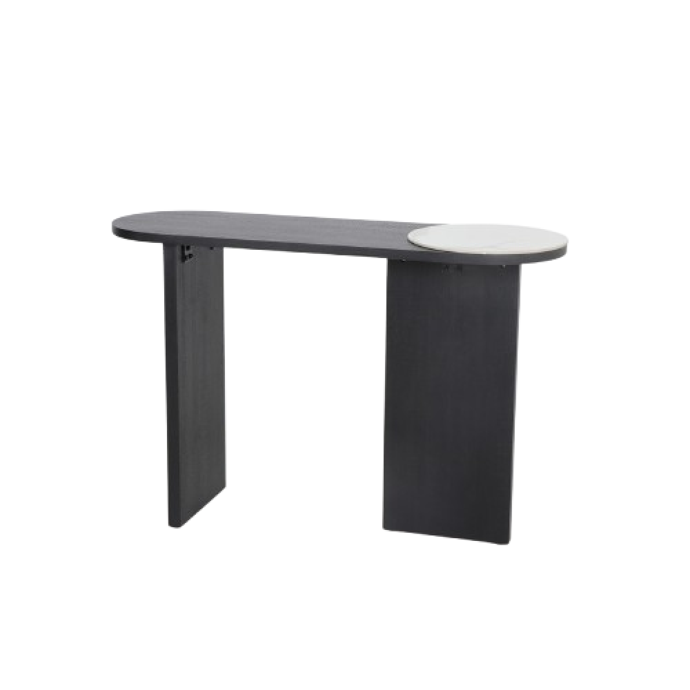 - يأتي الكنسول بسطح بيضاوي الشكل يمنحه مظهراً متناسقاً، و يجعله مثالياً للمساحات المختلفة.