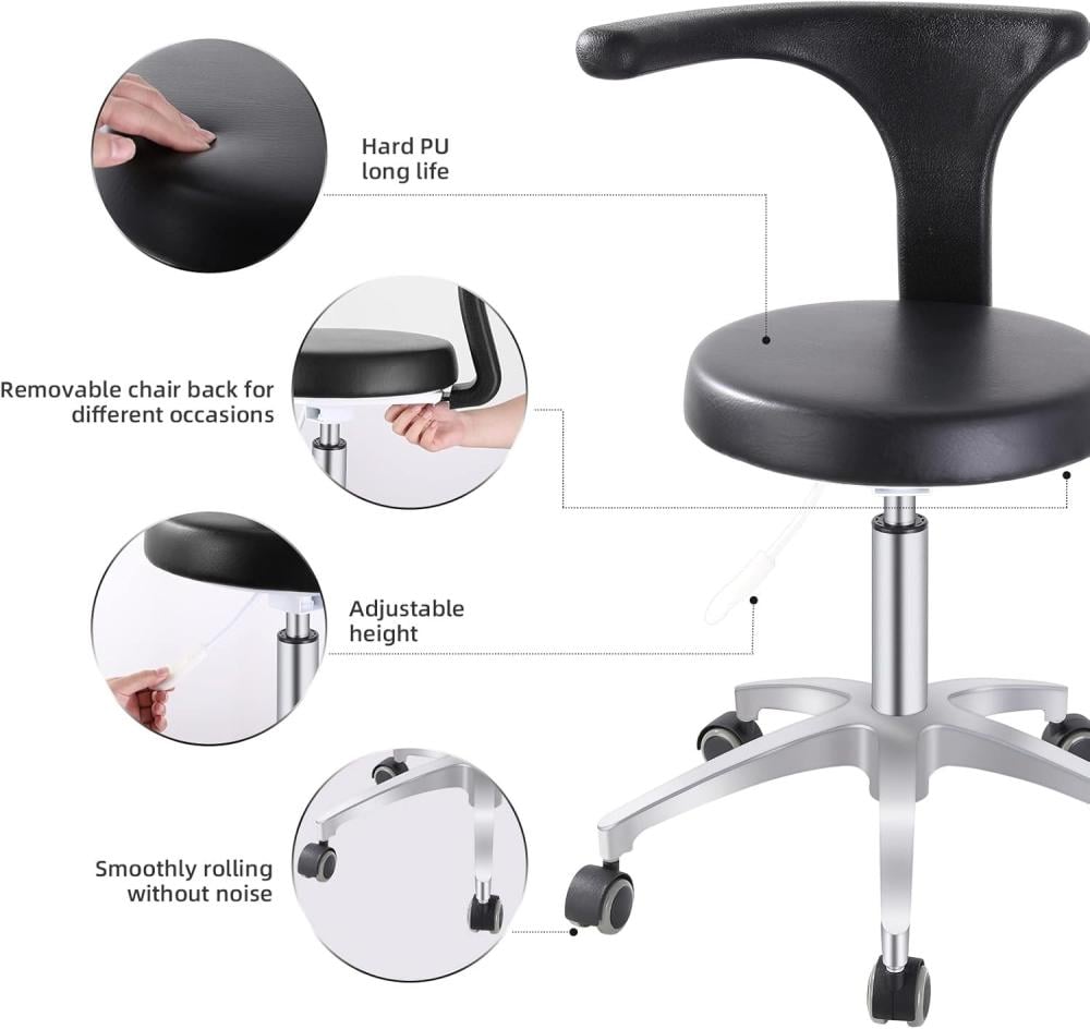 مريح: يمكن للكرسي أن يدور 360 درجة، ويمكن تدوير مسند الذراع إلى الجانب أو الأمام؛ ارتفاع قابل للتعديل 19 انش - 25 انش لتلبية احتياجاتك متعددة الاتجاهات والارتفاعات المختلفة. مناسبة بشكل خاص لأطباء الأسنان والحلاقين والبار.