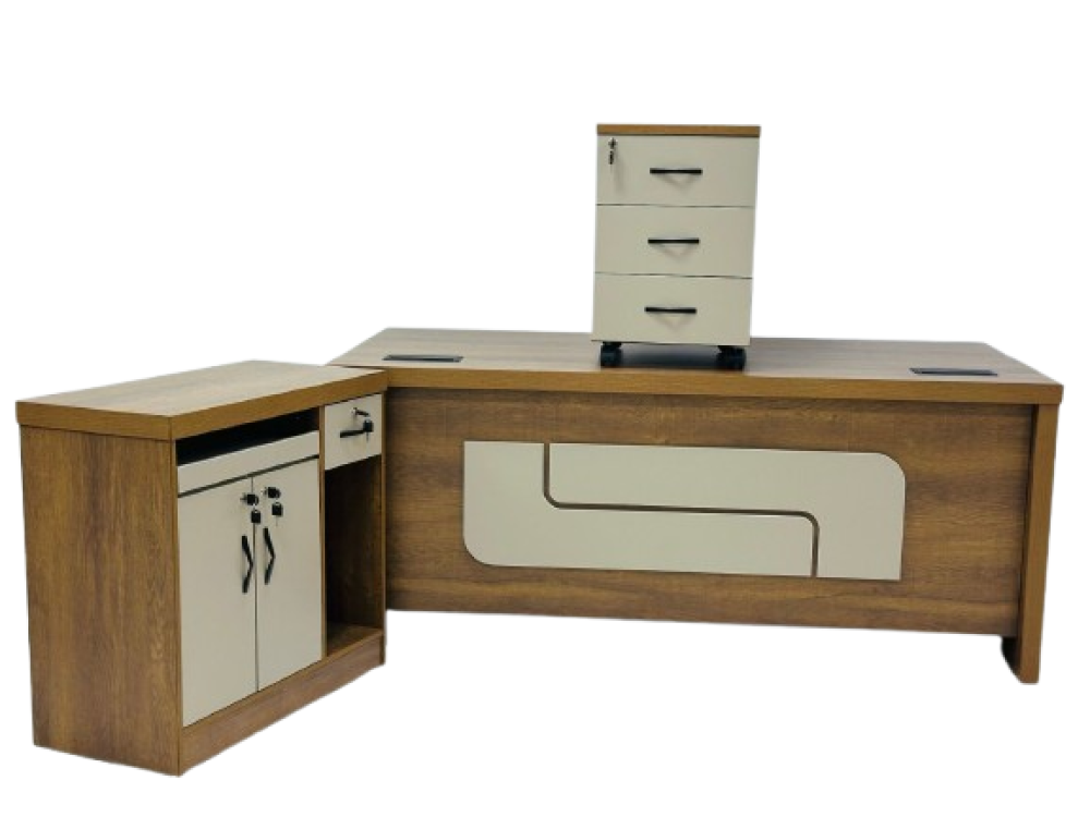 • تصميم أنيق وكلاسيكي حديث: يتميز المكتب بطابع كلاسيكي مع لمسات حديثة تناسب مختلف مساحات العمل.