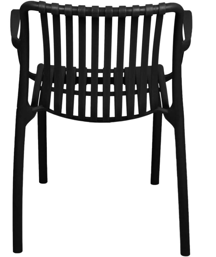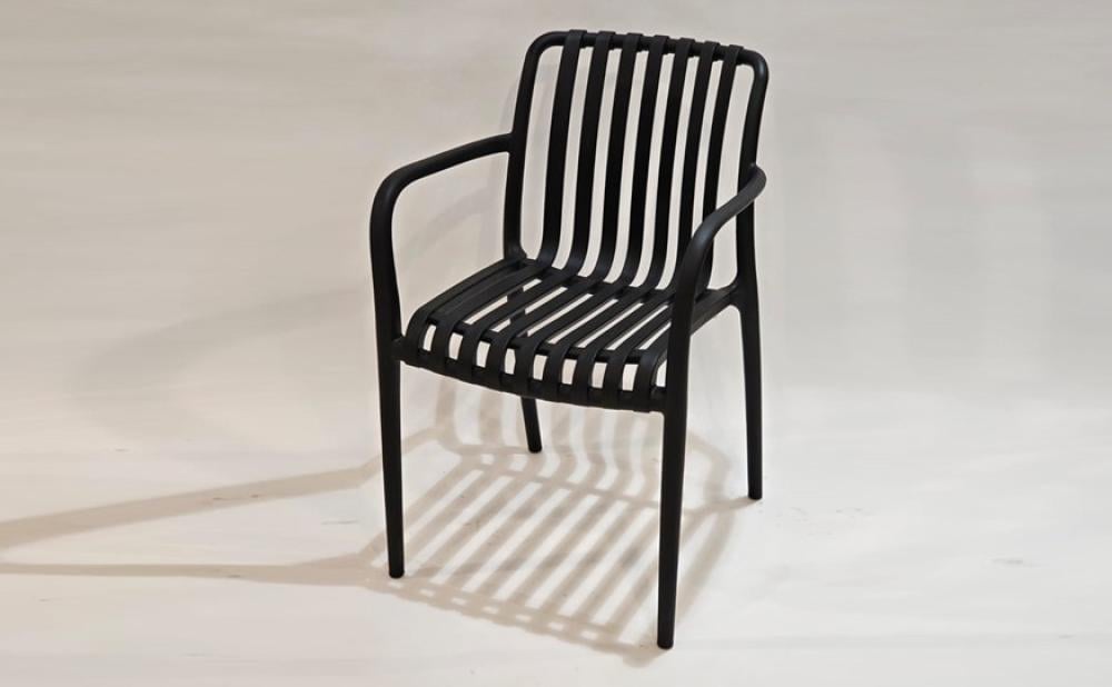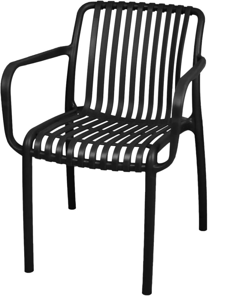 كرسي بلاستيك بذراعين وارجل لون أسود مقدم لكم من كاما
