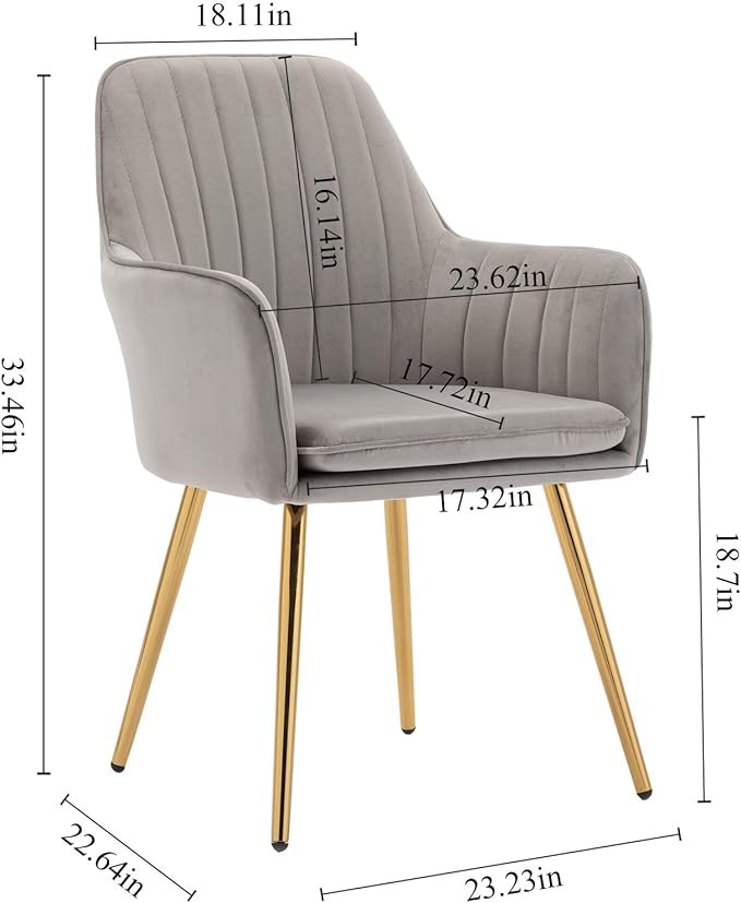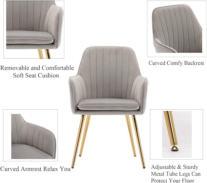 أرجل مطلية بالذهب: الأرجل الأنبوبية المعدنية مع طلاء ذهبي تجعل الكرسي بأكمله أكثر فخامة والجزء السفلي من أرجل الكرسي يحتوي على واقيات أرضية مطاطية بلاستيكية للأرضيات الحساسة